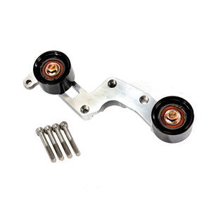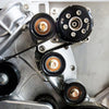 Our Predator Claw also adds one additional idler just above the crank pulley. This increases belt wrap at the harmonic damper as well. There are two threaded positions to choose from based on whether or not you're running a stock balancer or an aftermarket unit such as the ATI 10% or 20% units we also offer.