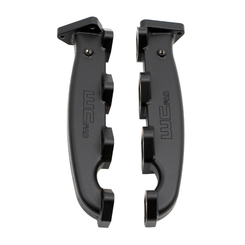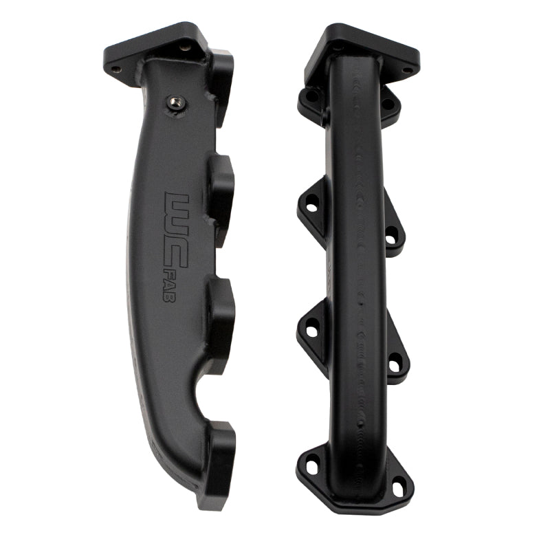 WCFab's 2001-2004 LB7 Duramax Billet Exhaust Manifolds replace the restrictive factory cast parts with high-strength, TIG-welded high-flow billet steel components. These manifolds are exhaust port gasket matched and internally divided for optimal flow with OEM or ported cylinder heads. Outlet locations allow full compatibility with OEM style up pipes and are paired with WCFab's 2" Stainless High-Flow Up Pipes for optimized performance. Includes new gaskets, ARP 12PT fasteners, and assembly lube for easy install. Finished in Black Ceramic Coat rated for 2000 deg F.Manifold replaces the following GM Part Numbers: 12637647, 12624683, 97224587