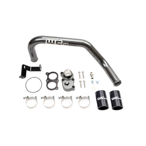 The Top Outlet Billet Thermostat Housing and Upper Coolant Pipe Kit for 2006-2010 LBZ/LMM Duramax replaces the OEM upper radiator hose that normally crosses over the driver side valve cover as well as the coolant return pipe. By changing the coolant routing to an upwards and forward layout from the thermostat, this kit improves access to driver-side fuel system components, adds room for larger aftermarket turbochargers, and updates the engine bay appearance. This kit is meant for use with WCFAB DUAL CP3s. Also compatible with dual alternator setups. Not compatible with PPE dual fueler kits. - - Replaces the following GM Part Numbers: 19330105, 15792824, 25833204, 97361881