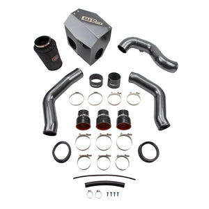 The Stage 2 upgrade for the 2013-2018 4th Gen Ram with 6.7L Cummins diesel engine combines our Stage 1 High Flow Bundle and 4" Cold Air Intake Kit with Air Box into a single package providing increased airflow for your turbo and engine for improved efficiency, throttle response, and turbo spool up. - - Replaces the poorly flowing, small diameter, crushed, factory pipes with our heavy duty, high flowing 3.5" Diameter Pipes. Kit includes upgraded high quality silicone boots that withstand higher pressure and temperatures than the factory boots to increase reliability and eliminate blown factory boots. Made in the USA from high strength, heavy duty 14 ga. aluminum tube with smooth, aerodynamic mandrel bends for increased durability and optimized flow. - - The high flow, fabricated aluminum intake pipe and air box enclosure with dry filter assembly replaces the restrictive plastic factory parts on your diesel for improved engine performance. All new design significantly increases air flow to your turbo producing improved horsepower and torque, quicker throttle response, and cooler intake temperatures by drawing cold air through the inner fender and ram air duct in the grille. All aluminum construction features large diameter 4" piping with smooth aerodynamic bends to improve intake air velocity, volume, and provide more aggressive engine and turbo sound during acceleration. - - High quality hardware, silicone boot, seals, and stainless steel t-bolt clamps ensure optimum durability and ease of installation. Removable air box lid element allows for easy visual inspection and maintenance of your WCFab filter with included hydrophobic pre-filter cover, to help keep your MAF sensor, turbo, and engine airways contaminant free. Air box provides mounting provision for the OEM air box actuator so that it can remain plugged in for CEL free operation, but keeps both grille and fender ports fully open for maximum air flow to your turbo.