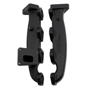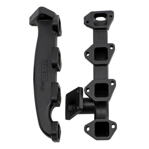 WCFab's 2017-2025 L5P Duramax Billet Exhaust Manifolds replace the restrictive factory cast parts with high-strength, TIG-welded high-flow billet steel components. These manifolds are exhaust port gasket matched and internally divided for optimal flow with OEM or ported cylinder heads. Outlet locations allow full compatibility with OEM style up pipes and are paired with WCFab's 2" Stainless High-Flow Up Pipes for optimized performance. Fully compatible with vehicle emissions system, these L5P Manifolds include the necessary sensor port and EGR riser flange. Includes new gaskets, ARP 12PT fasteners, and assembly lube for easy install. Finished in Black Ceramic Coat rated for 2000 deg F.