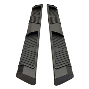 AT6 Running Boards are designed for full size trucks and feature a 5-inch wide step area with integrated indented pads for solid footing. Built with clean, rounded end caps and bracket covers for an OEM?style appearance, they offer a refined yet rugged look. Two finish options are available, textured black powder-coated extruded aluminum, backed by a 3?year limited warranty, or bright finish polished stainless steel with a limited lifetime warranty. These boards are lightweight but structurally durable, designed to minimize added weight with the strength for the toughest jobs. The footboard and pads are ergonomically placed for comfort and maximum traction. Bracket covers are used to conceal mounting hardware and help preserve that clean factory look. The AT6 models are vehicle-specific fit and include hardware to bolt on the boards with no drilling required. Installation takes about 1.5hrs, and depending on the height of the truck, should not require a lift. The aluminum construction offers excellent weather resistance with proper care and maintenance, but for harsh road conditions or regions where salt is used on the roadways during winter, choose stainless steel. Replace your factory running boards with AT6. They are a sleek, solidly built option with stylish design, ample stepping area, and finish choices for a custom look.
