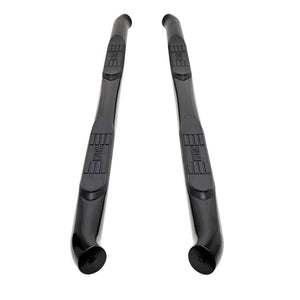 Westin(TM) E-Series Nerf Bars are made of 3in. diameter round tubing and are vehicle specific designs. Step design and mounting technique varies by application (mounting kit included). They feature recessed area mounted step pads unique to E-Series Nerf Bars feature the Westin(TM) brand name and are UV resistant. Installation Instructions