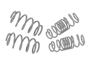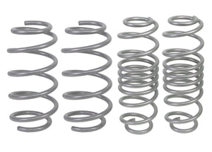 Whiteline Springs deliver improved vehicle performance whilst maintaining safety and ride quality characteristics. This kit contains 2.6kg/mm (145lb/in) front rated springs that provide a 30mm drop while the 2.5kg/mm (140lb/in) rated rears deliver a desirable 30mm to the vehicle. By lowering the vehicles centre of gravity, the unique and progressive rate coil design not only improve performance but enhance overall appearance. Developed and manufactured in Europe from the highest quality materials, coating and to the finest tolerances guaranteeing exact fitment. Whiteline Springs are engineered for optimal balance with OEM and aftermarket shocks. For total grip activation match with Whiteline Sway Bar and Essentials kit for unrivalled handling and optimal vehicle performance.