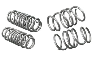 Whiteline Springs deliver improved vehicle performance whilst maintaining safety and ride quality characteristics. This kit contains 2.8kg/mm (157lb/in) front rated springs that provide a 35mm drop while the 4.3kg/mm (241lb/in) rated rears deliver a desirable 35mm to the vehicle. By lowering the vehicles centre of gravity, the unique and progressive rate coil design not only improve performance but enhance overall appearance. Developed and manufactured in Europe from the highest quality materials, coating and to the finest tolerances guaranteeing exact fitment. Whiteline Springs are engineered for optimal balance with OEM and aftermarket shocks. For total grip activation match with Whiteline Sway Bar and Essentials kit for unrivalled handling and optimal vehicle performance.